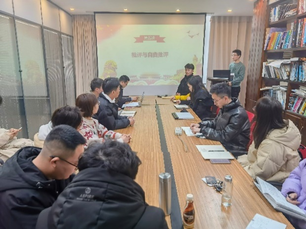 支委代表熊志鹏对个人提高学习和工作效率、党员代表张恪对提升个人学业、预备党员韩叙对个人党建理论水平提升等方面做出了自我批评,与会党员和积极分子分别发言给予了中肯的建议。会上大家出出汗、红红脸,在坦诚的讨论中认识到个人不足和未来努力的方向,营造了同志间互帮互助的氛围,对凝聚支部共识、提升支部活力大有成效。