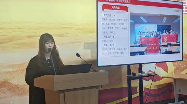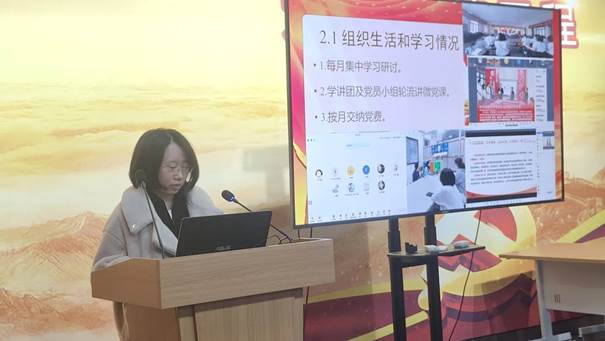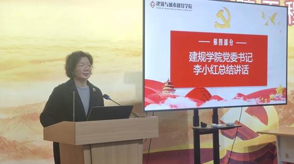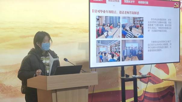 城乡规划专业2019级本科生党支部党支书郭艺,从“规范化,强实践”的角度,总结了支部一年以来的党建工作。该支部遵循规范严格管理,确保三会一课制度有效落实;针对毕业年级成员开展了多样化组织生活;支部成员不断加强实践活动,参与多项实践项目,发挥学科优势。最后表示要牢记问题、不断前行,提升工作水平。