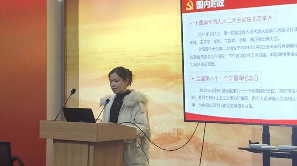 随后,德育助理陈庆馀播报国内外时政,包括十四届全国人大二次会议、全国第六十一个学雷锋纪念日和匈牙利总统批准瑞典加入北约的议案等。