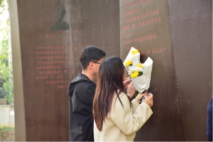 仪式尾声,师生默读雕塑上的格言并敬献鲜花。"清明细雨中的白菊,是对先辈的追思,亦是对未来的承诺。愿每一位华科建规人,都能在此门下,找到自己的“匠心”与“使命”。在坚守学术匠心、弘扬教育家精神、服务国家战略、具备全球视野并进行本土实践的道路上,不断前行,创造更加辉煌的未来。李晓峰教授总结:“这座大匠之门承载的不仅是七位先驱者的形象轮廓,更是那种'带着氧气瓶也要认真讲学'的赤子之心。愿每位穿行此门的学子,都能成为未来的'大匠'”