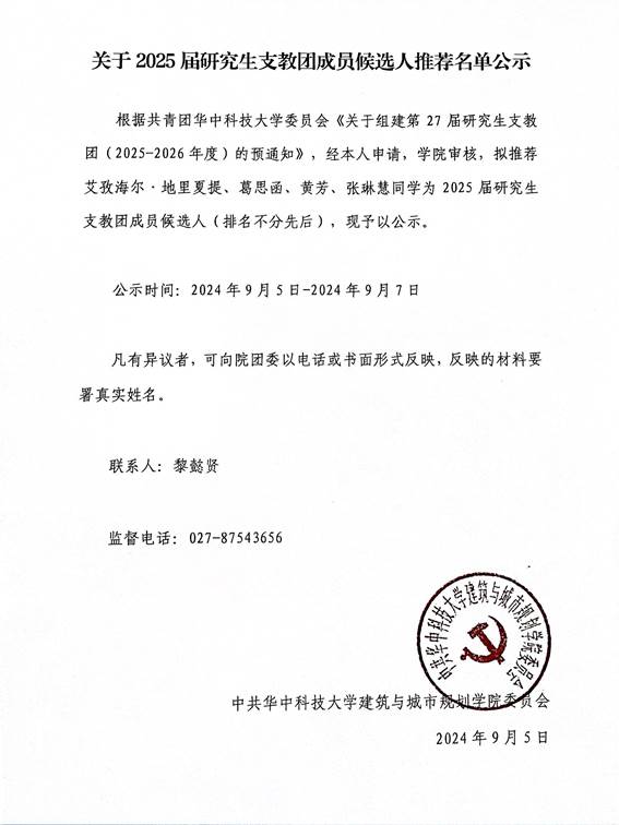 yl6809永利集团关于2025届研究生支教团成员候选人推荐名单公示